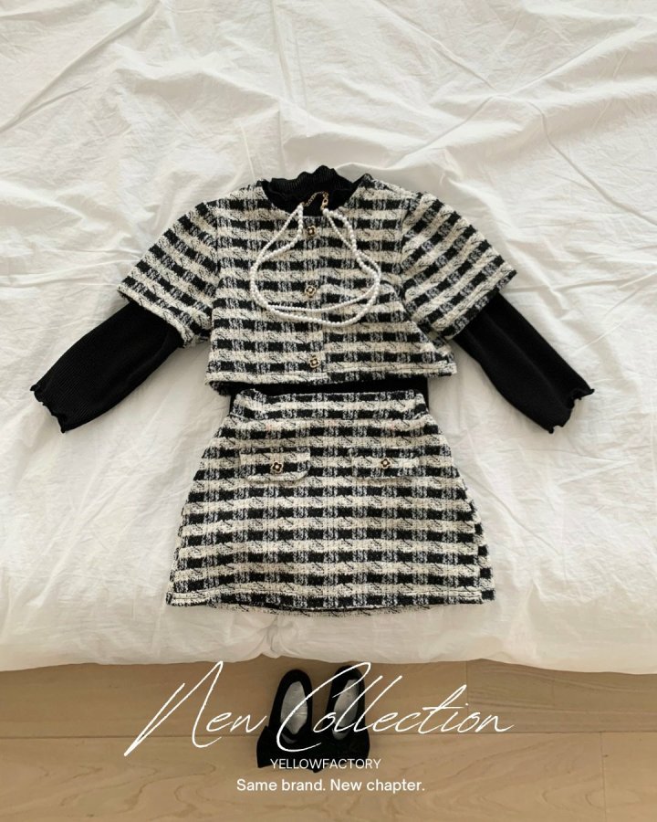 • 트위드 체크 텍스처로 단정한 무드