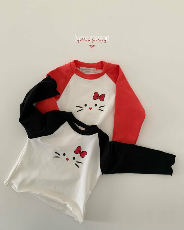 나그랑 배색에 리본 야옹이 프린트가 콕 들어간 뉴 야옹이 티예요.