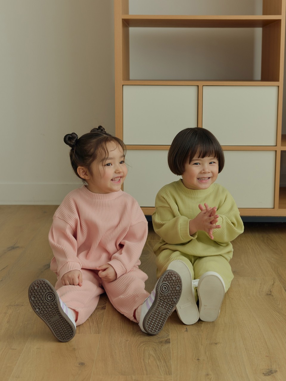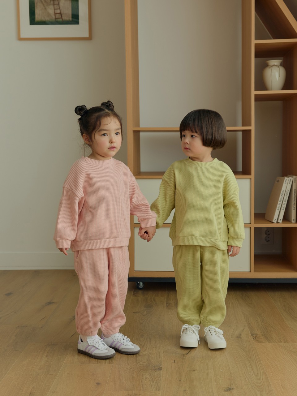 기본이지만 소재감으로 포인트 주기 좋은 와플 셋업이에요